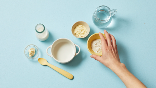 - Færdiglavet mos og pulvergrød kan indgå som en del af barnets mad